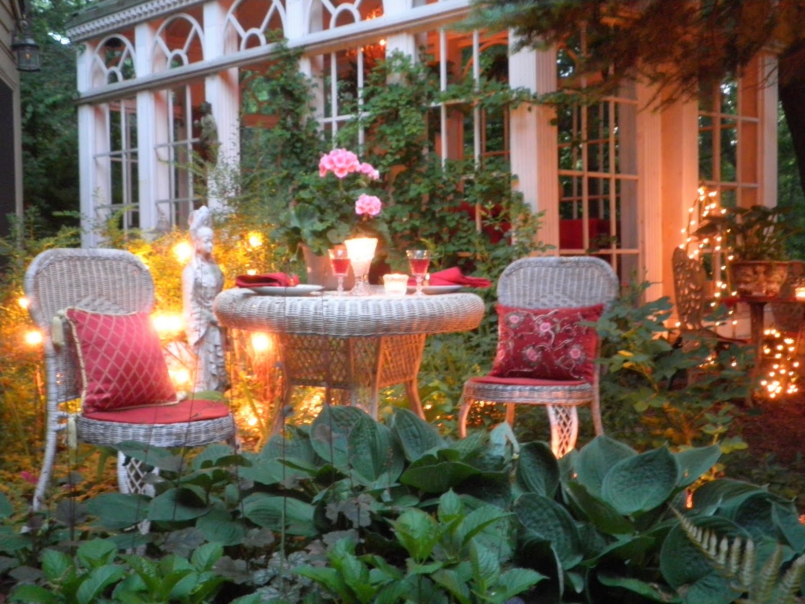 We had prepared for some outside dining, as the dusk totally settled there was this an amazingly cool breeze, the birds were singing...no bugs to be found...and the smells of wine and flowers was so powerful. As if someone had taken the lid off the very best perfume or freshener....you just had to stop....take it all in, look around, breathe and be blessed.
